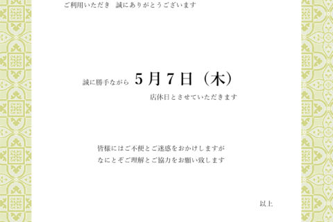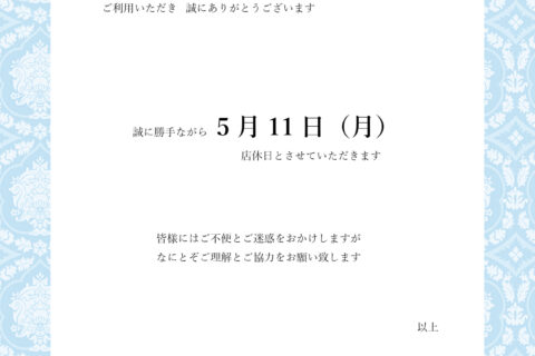 営業はお休みさせていただきます